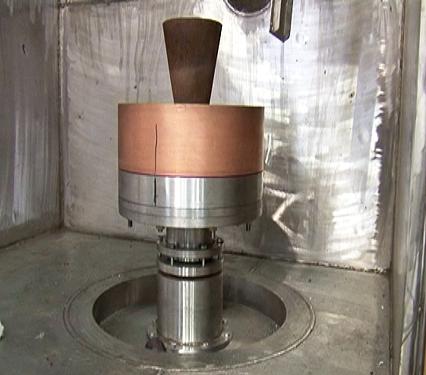 1307#產(chǎn)品ZGX-50B雙性能鑄造爐中的液壓隨動傾轉(zhuǎn)澆注系統(tǒng)與離心轉(zhuǎn)動機(jī)構(gòu)系統(tǒng)是整臺設(shè)備的核心部件,它可以將熔煉好的鋼液用模仿人的操控動作快速準(zhǔn)確倒入模殼中,然后開動轉(zhuǎn)動機(jī)構(gòu),使水冷結(jié)晶器帶動模殼按程序正反方向旋轉(zhuǎn),待高溫合金凝固后即得到細(xì)晶組織。這兩項動作必須連貫無誤的操作執(zhí)行才能成功。