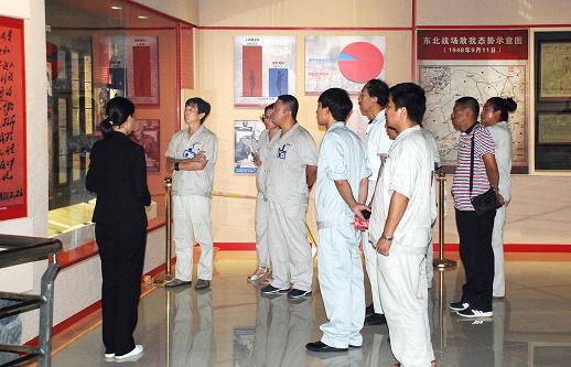 在黨總支書記陳冰的帶領(lǐng)下,公司所有黨員同志在革命烈士紀念碑前向革命烈士獻上花環(huán),集體默哀回顧歷史,以表示對為了革命事業(yè)浴血奮戰(zhàn)、英勇犧牲的所有烈士哀悼與懷念。隨后,全體黨員來到紀念館展館參觀,講解員按照迎接決戰(zhàn)、廘戰(zhàn)塔山、策應(yīng)決戰(zhàn)、人民支援、彪炳千秋的順序向參觀黨員全面講解了塔山阻擊戰(zhàn)的具體戰(zhàn)役情況及戰(zhàn)略形勢,剖析了塔山阻擊戰(zhàn)的重要戰(zhàn)略意義,詳細介紹了戰(zhàn)爭過程中張永昌等黨員同志為了革命事業(yè)敢于犧牲的英勇事跡,展館中陳列了各種作戰(zhàn)時的武器、獎?wù)隆Q心書、人民支援前線用具等,一幅幅塔山阻擊戰(zhàn)的圖片和一件件烈士生前的遺物完整而又真實的還原歷史,譜寫了一首壯烈的革命贊歌。正是塔山英雄們的浴血奮戰(zhàn),阻止了東進兵團的國民黨之敵,為遼沈戰(zhàn)役的全面勝利爭取了寶貴時間。參觀的黨員對烈士的革命精神表示由衷的敬意,感受烈士們不朽的精神,并且深刻體悟到黨員干部必須堅定理想信念,切實把開展“兩學一做”學習教育作為一項重大的政治任務(wù),作為加強對黨員干部教育、建設(shè)高素質(zhì)黨群隊伍的難得契機。