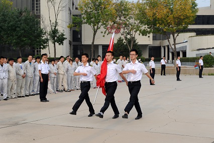 雖然在學(xué)校參加了大大小小的升旗儀式也有一年之久了,經(jīng)驗(yàn)也算比較豐富的了,但是在航星集團(tuán),在這么多員工面前升旗我還是第一次。這不僅僅是一次升旗,這還是向集團(tuán)的員工們展示我們的機(jī)會,我們來到這里,一舉一動(dòng)都代表著學(xué)校的形象,再加上上屆學(xué)長的表現(xiàn)非常出色,這讓我感覺到無比的壓力。所以在得到升旗任務(wù)的時(shí)候我們就開始準(zhǔn)備了,經(jīng)過幾次的篩選,選出了包括我在內(nèi)的幾個(gè)護(hù)旗手,他們都是方隊(duì)出身,隊(duì)列動(dòng)作過硬,是護(hù)旗手的不二人選。再有就是升旗的隊(duì)形排列,之前的學(xué)長設(shè)計(jì)得非常好,但是我們想有所創(chuàng)新,在我們幾個(gè)負(fù)責(zé)人的精心設(shè)計(jì)之下,我們又設(shè)計(jì)出了一個(gè)屬于我們自己的隊(duì)形。之后就是無數(shù)次的演練,每個(gè)環(huán)節(jié),從入場,旗手交接旗,升旗,揚(yáng)旗,都經(jīng)過了研究和排練。